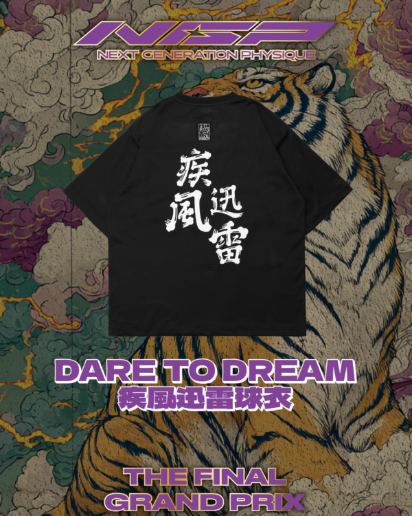 NGP FINAL 2025 限量販售疾如風,迅如雷。力量與速度交織,塑造舞台上最令人屏息的瞬間。正面 DARE TO DREAM,刻畫敢於追夢的信念;背面「疾風迅雷」,將舞台精神化作你身上的榮耀印記。輕量透氣網布,無論訓練還是日常,隨時穿出你的態度與自信。📌販售資訊:販售方式:官網下單,賽後一週寄出售價:$1380 尺寸 M, L, XL, 2XL